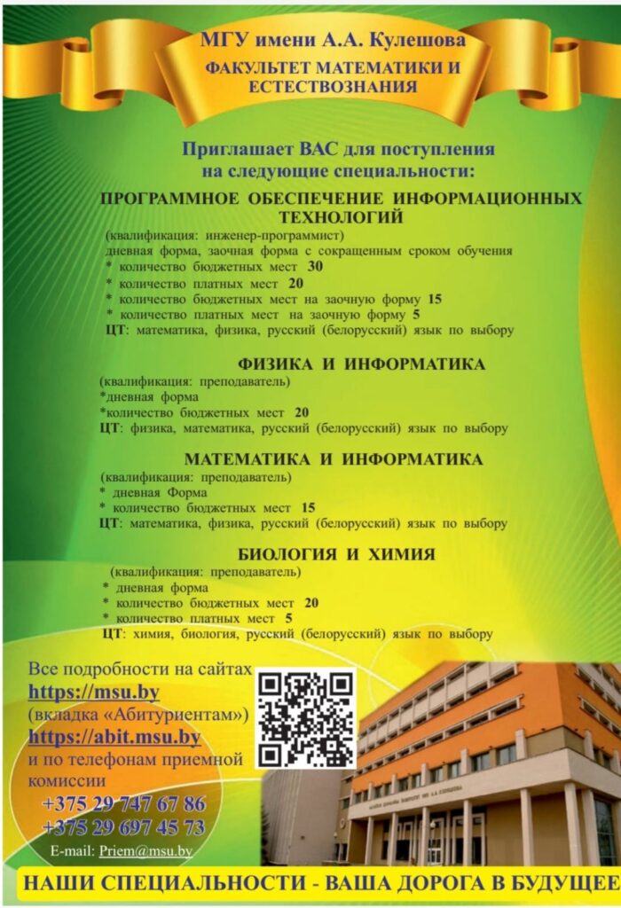 Социально-гуманитарный колледж учреждения образования «Могилевский государственный университет имени А.А .Кулешова» (внешняя ссылка) (информация о ходе приема документов (внешняя ссылка))